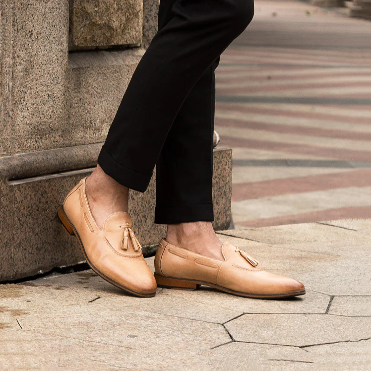 Brown Suede Pointed Toe Single Button Business Slip-On Shoes