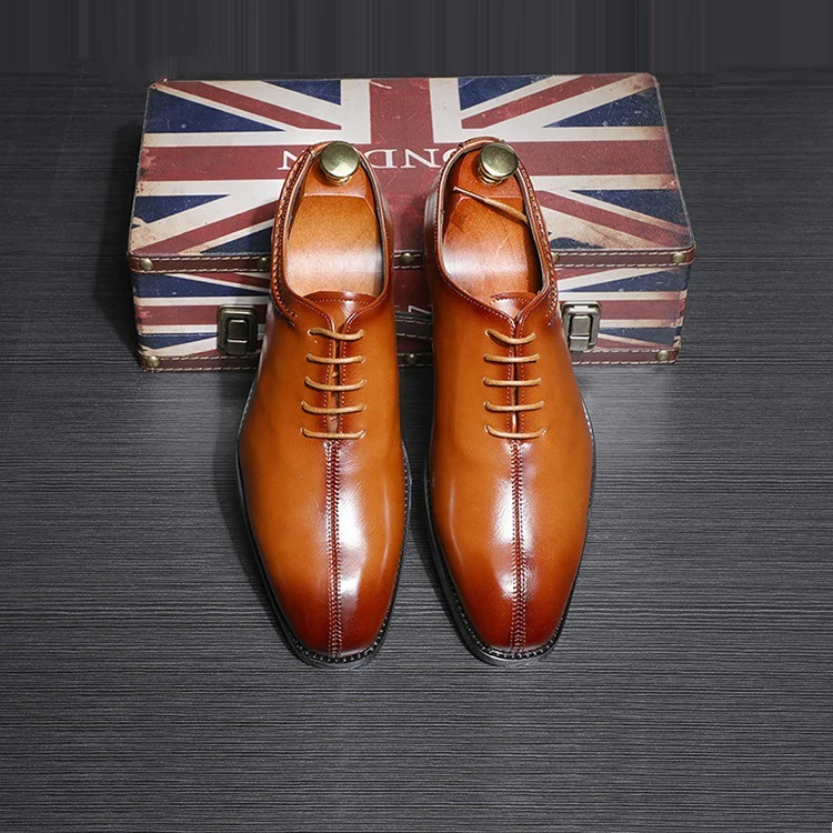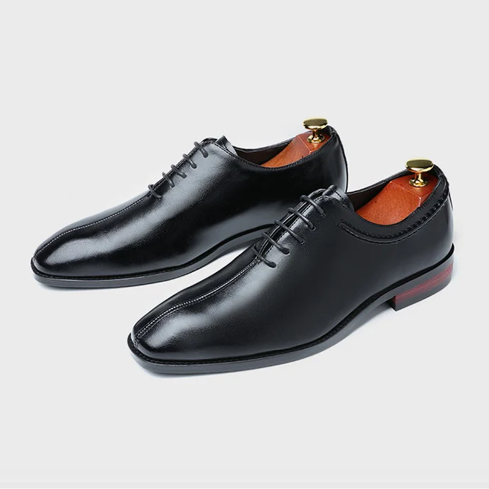 Square-toe formal brogue lace-up oxford slip-on Shoes