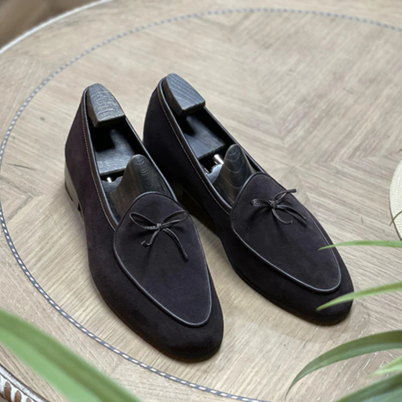 British retro loafers casual leather shoes slip-on suede pointed toe loafers